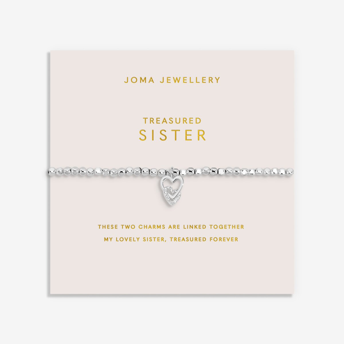 Discover our Forever Yours Collection, thoughtfully designed with every loved one in mind. The Forever Yours 'Treasured Sister' Bracelet in Silver Plating features a silver-plated hammered bead design with an interlocked heart charm to represent your unbreakable bond. Wrapped around a beautiful sentiment-stamped card, it's the perfect way to celebrate them.